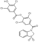2,6-dichloro-4-(1,1-dioxido-2,3-dihydrobenzo[d]thiazole-3-carbonyl)phenyl 3,5-dichloro-4-hydroxybenzoate |